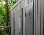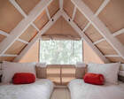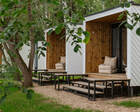 - Домики-кубы: площадью ≈ 22 м2, с панорамными окнами, собственной верандой и душевым/санузлом в отдельном эко-модуле. Вмещают от 1 до 4 человек.