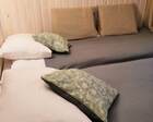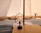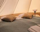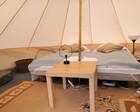 Шатры обогреваются, в них проведено электричество, для отдыха установлены 2-спальные кровати. В мини-домиках 1 спальная комната и ванная. В ванной комнате есть душ. Бесплатно выдаются туалетно-гигиенические принадлежности. Полы в домиках паркетные. Из окон виден садовый участок.