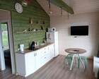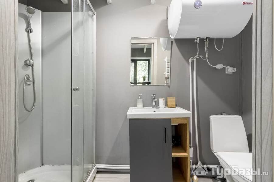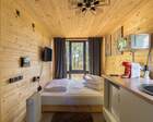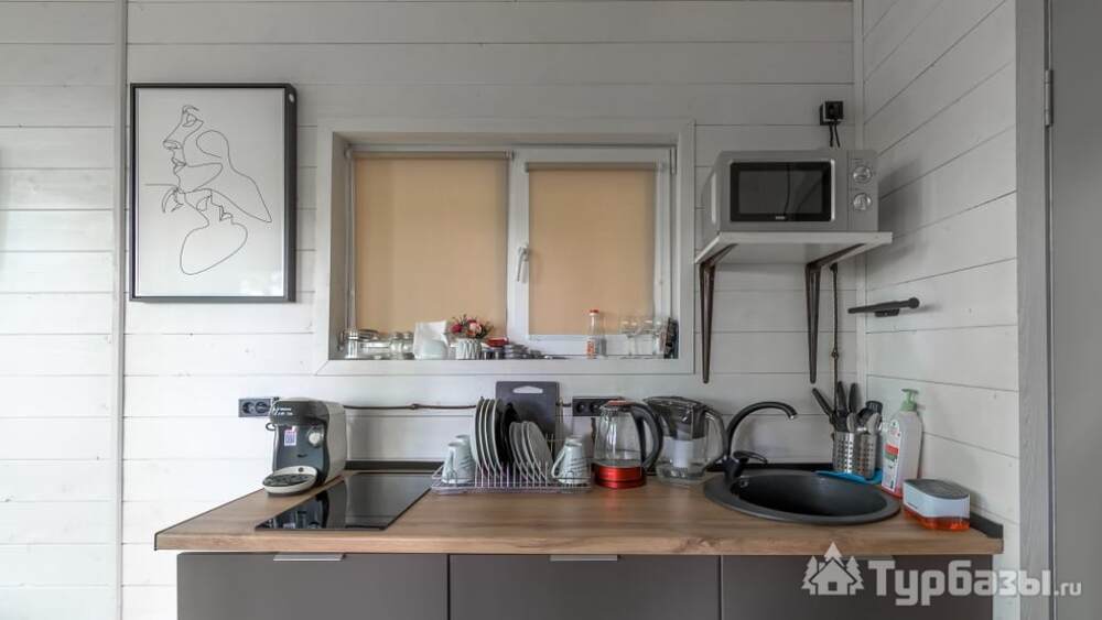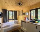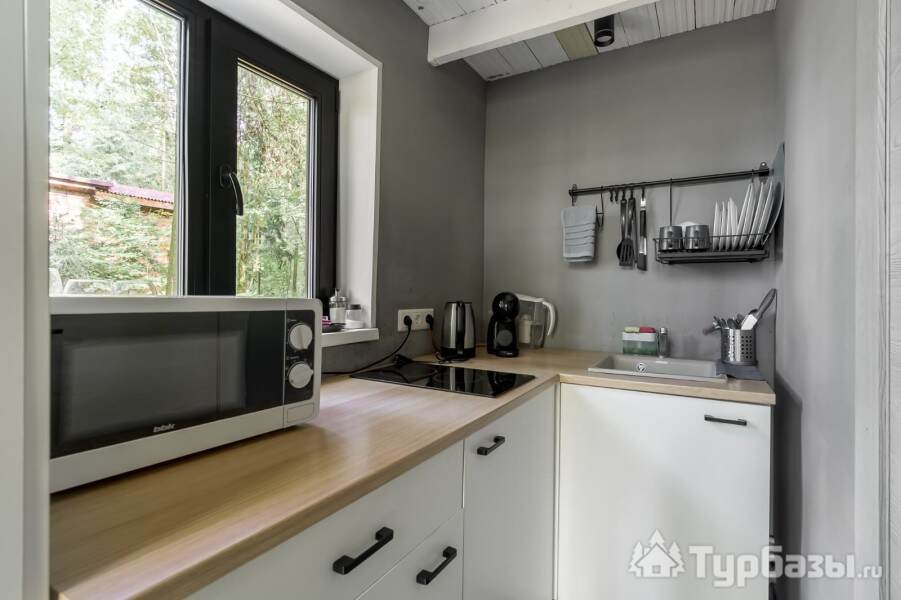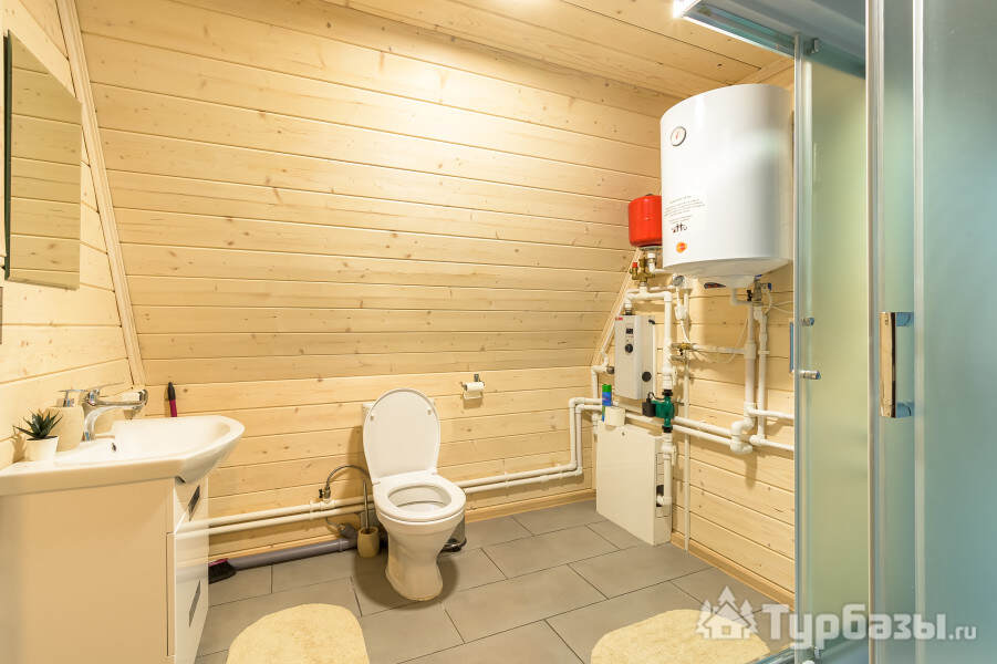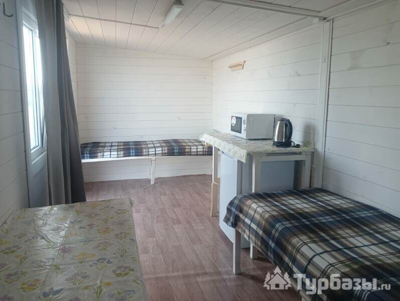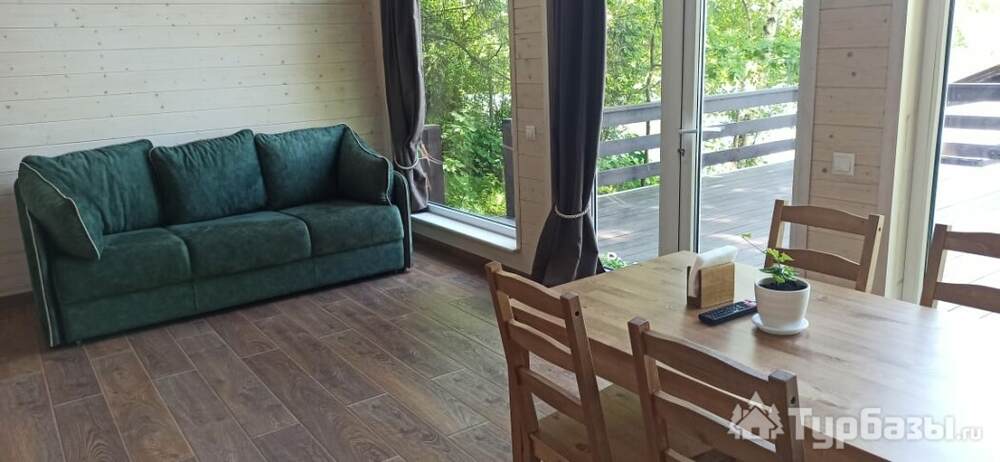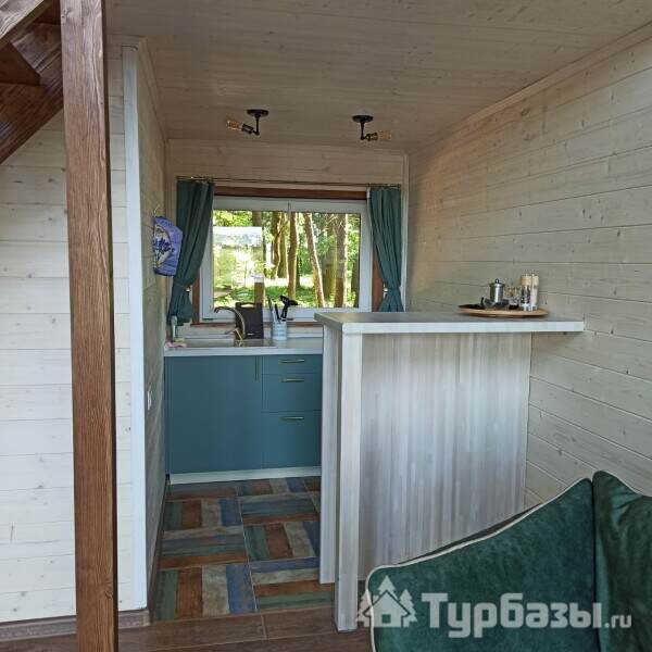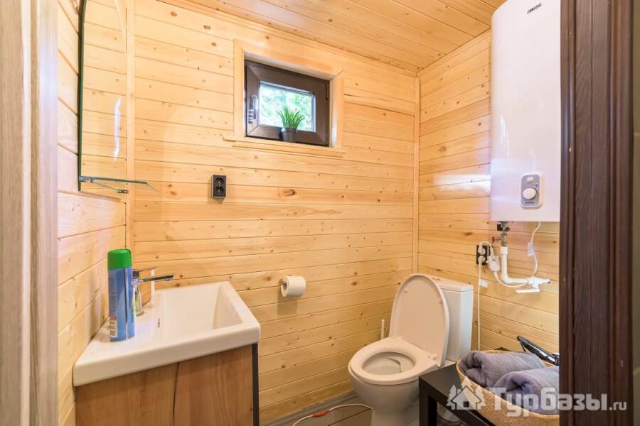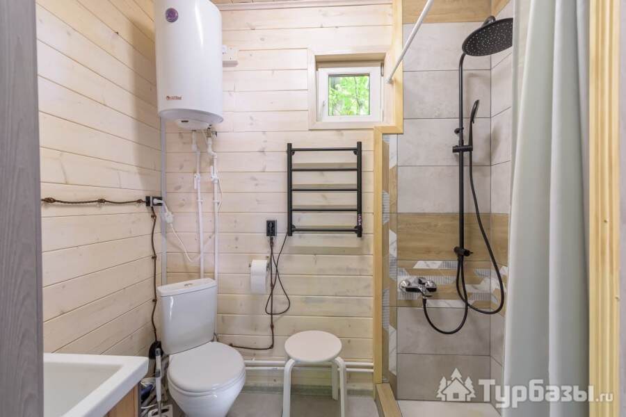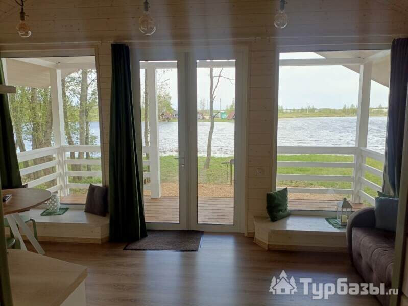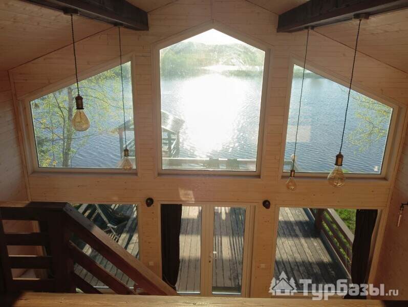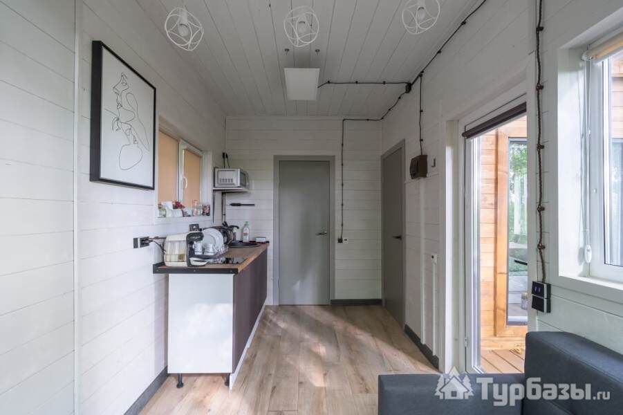 На базе — несколько типов домиков (одно- и двухэтажные, A-frame и эко-домики) с кухнями или мини-кухнями, террасами и панорамными окнами; рядом — парковка и оборудованные места для барбекю. Для любителей парной действует баня у воды (аренда возможна поминутно/по сеансам). Готовят и завтраки по заказу.