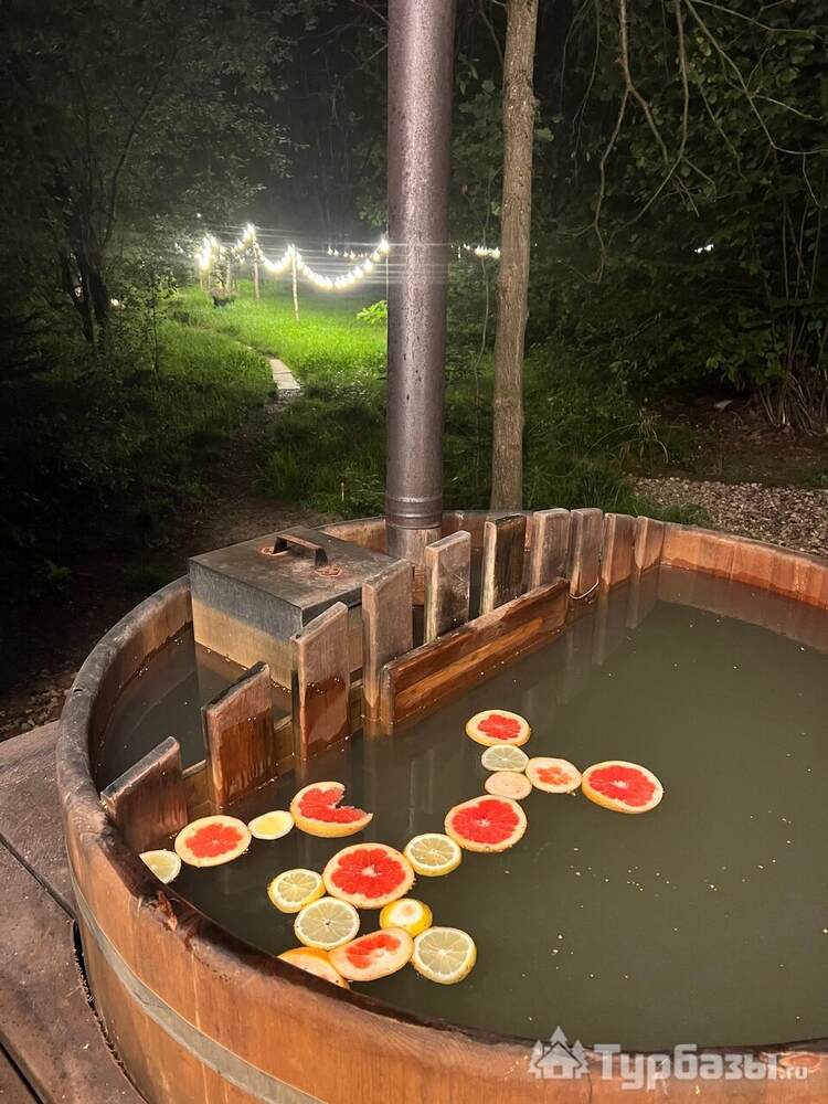 Каждый домик продуман «под человека»: внутри есть всё необходимое для комфортного проживания, а на крыльце установлен фурако (японская купель). Перед домами — оборудованные мангальные площадки и костровые зоны, шезлонги и продуманная зона отдыха; для готовки можно попросить казаны и печи разного размера. На территории — пруд, декоративный курятник-фотозона и детская площадка.