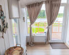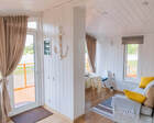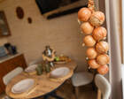 Катин Клёв — набор небольших деревянных домиков на 2–6 гостей: в каждом — спальня, гостиная с диваном, обеденная и кухонная зоны со всем необходимым оснащением, есть ТВ; отдыхающим предоставляют полотенца, халаты и тапочки. У каждого домика — отдельная барбекю зона; по запросу приносят самовар.