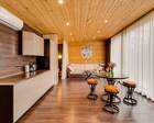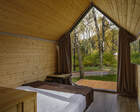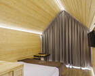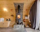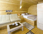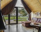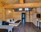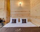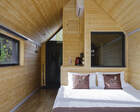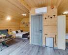 Для проживания гостей предусмотрены уютные шале. В каждом из них обустроена большая кровать, камин и современная мебель.