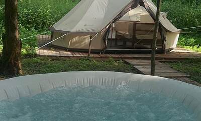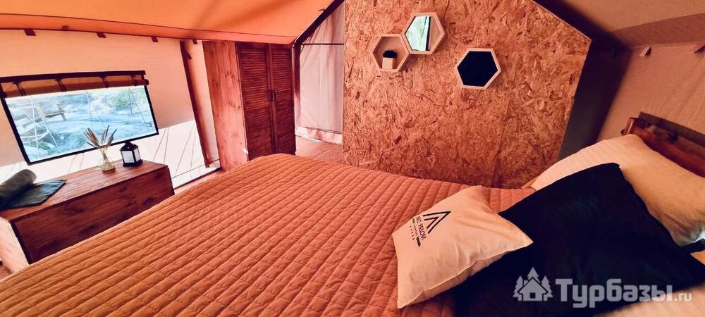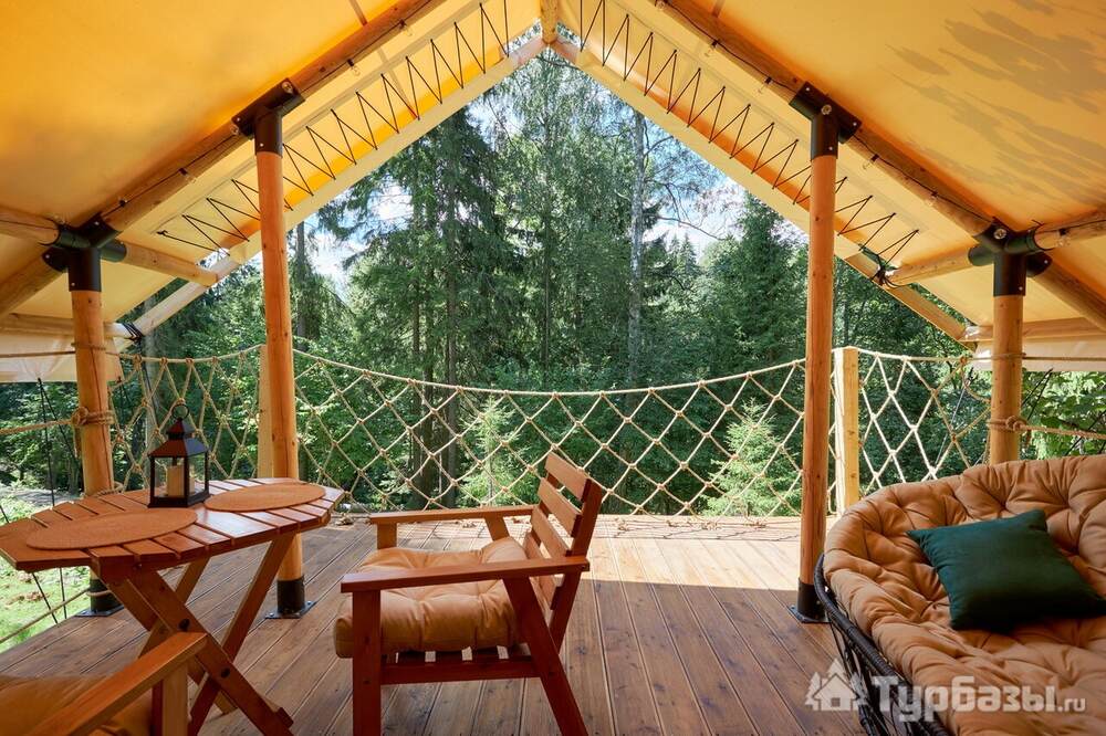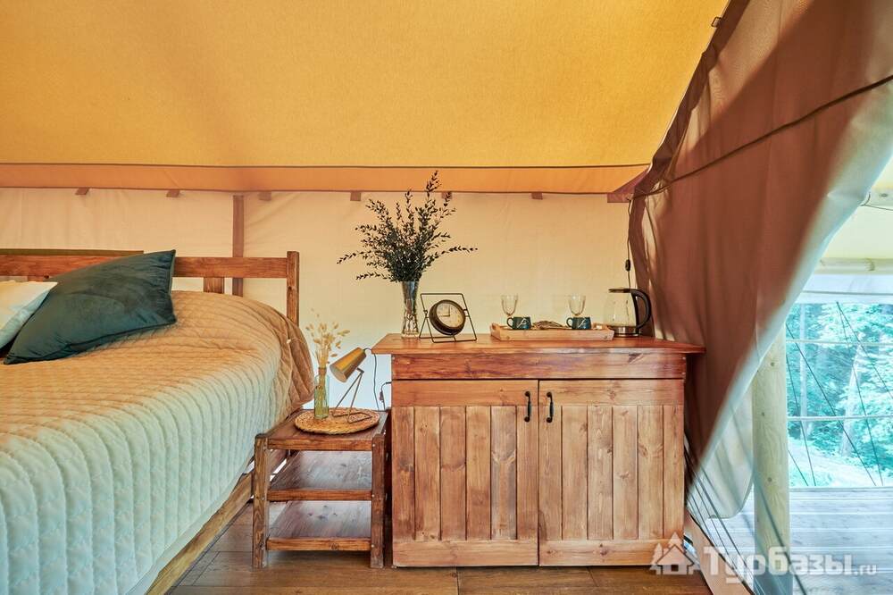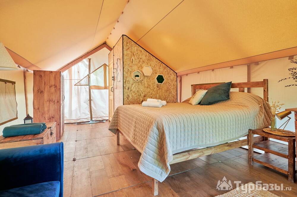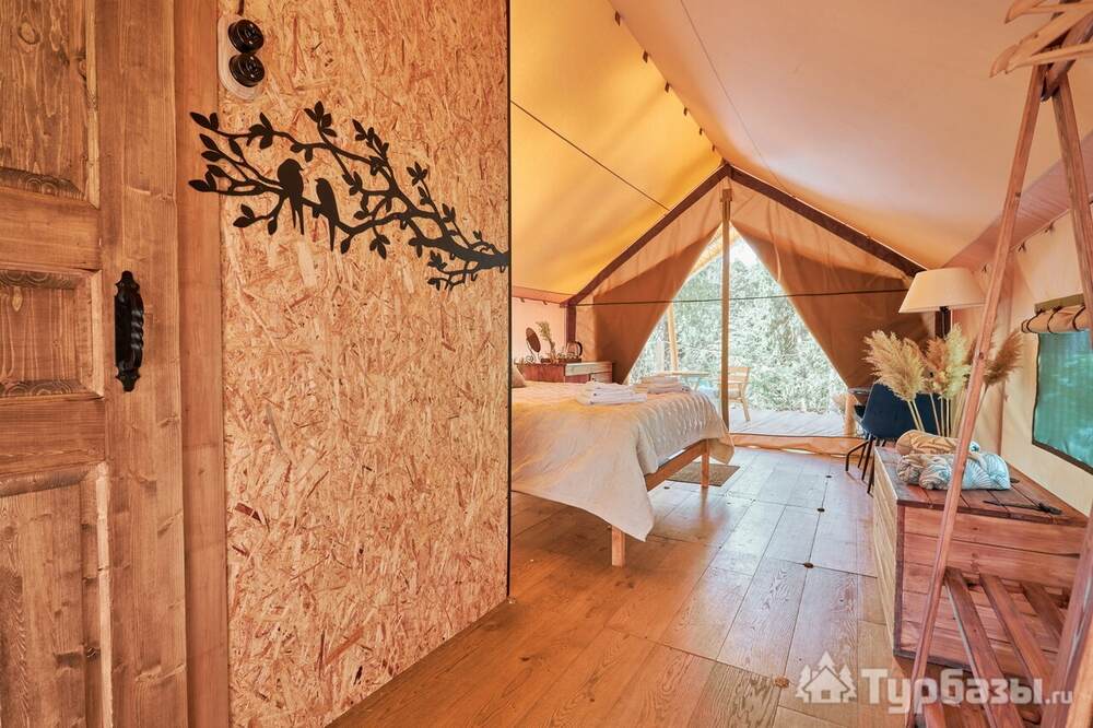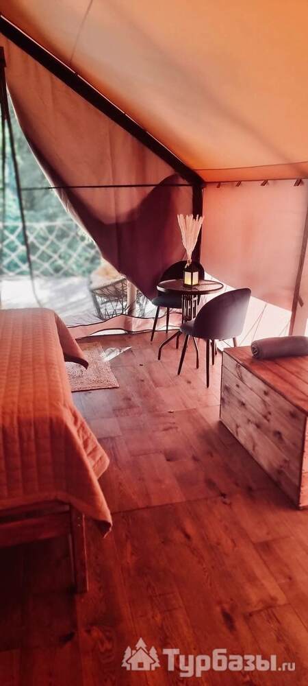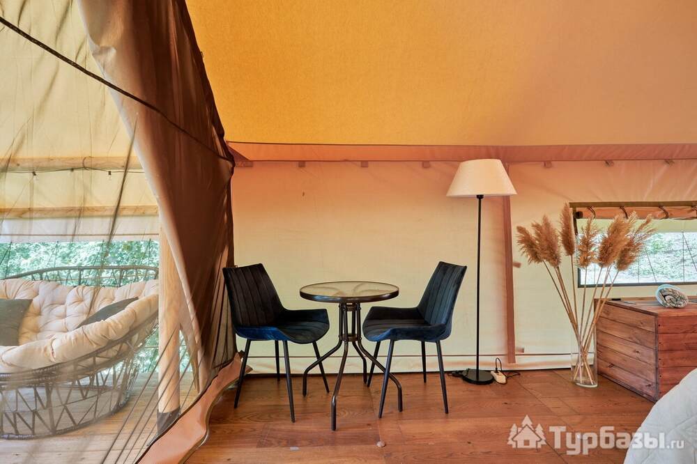 Каждый тент-хаус оборудован собственной верандой и необходимым комфортом: санузел и душевая в номере. На территории есть парковка, мангал-зоны и места для посиделок у костра — всё сделано так, чтобы отдых был простым и уютным, без лишнего пафоса.