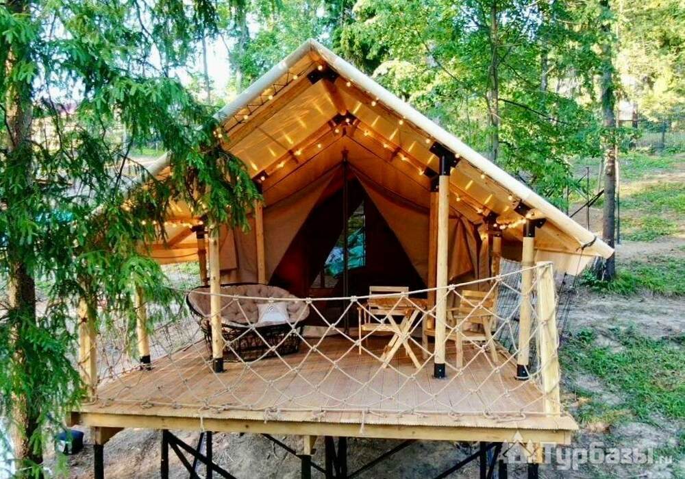 «Лес рядом» — удачный выбор для тех, кто хочет очутиться в лесу с комфортом: сафари-тенты, веранда, банальные, но приятные удобства и неспешная программа для восстановления сил.