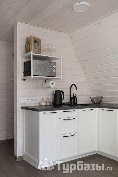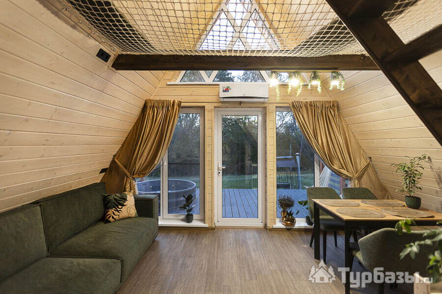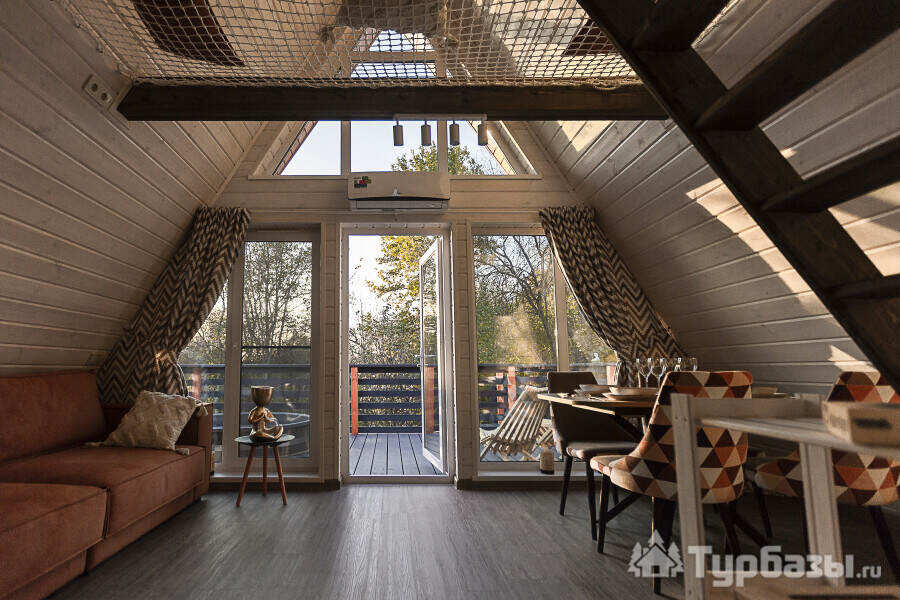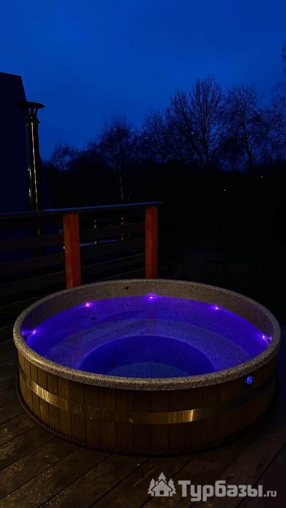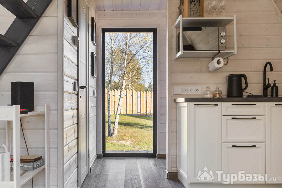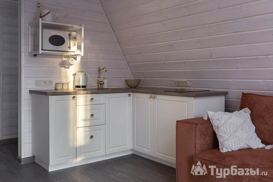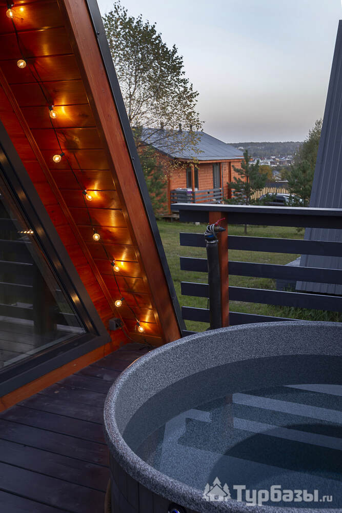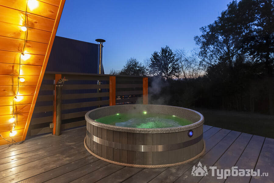 На территории — три разных по настроению домика: Винный, Тропики и Бохо; все домики подготовлены для круглогодичного проживания и оснащены кухнями (плита, мини-холодильник, микроволновка, чайник, набор посуды). У каждого домика есть собственная купель Фурако с подогревом на террасе (оплачивается отдельно). Парковка, мангальная зона у каждого домика и базовый набор бытовых мелочей входят в сервис.