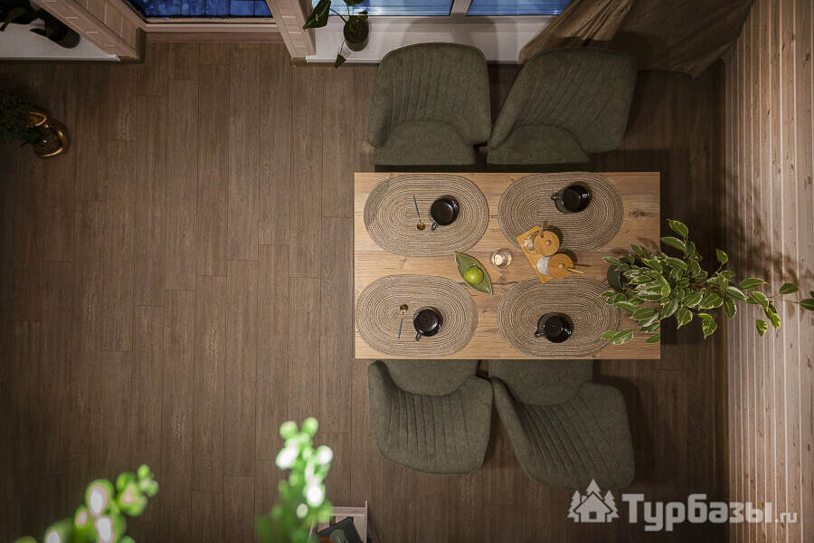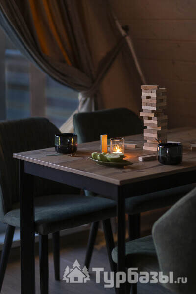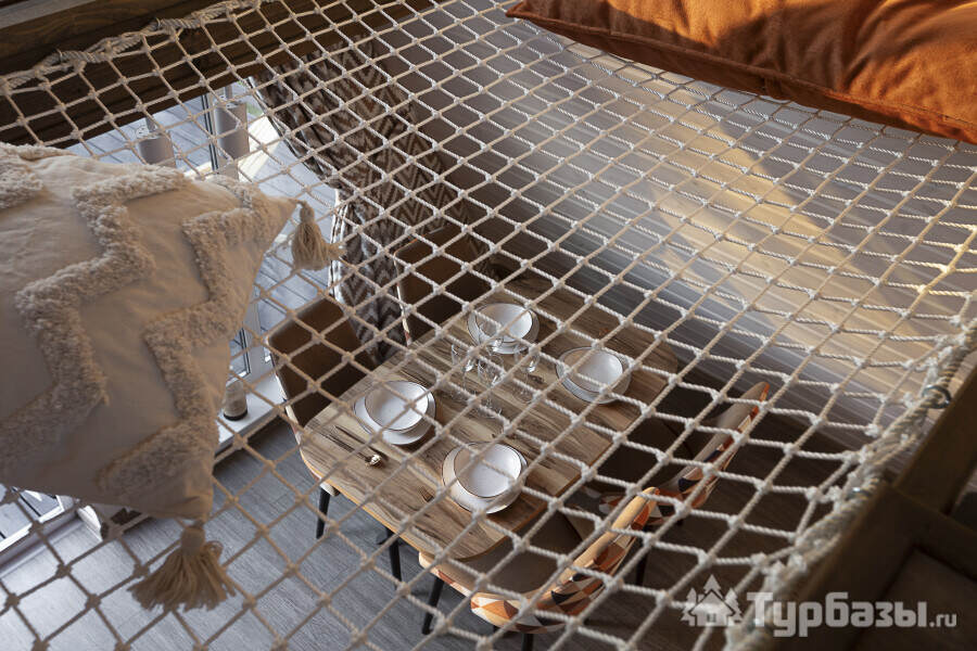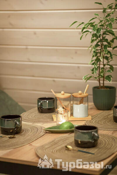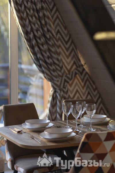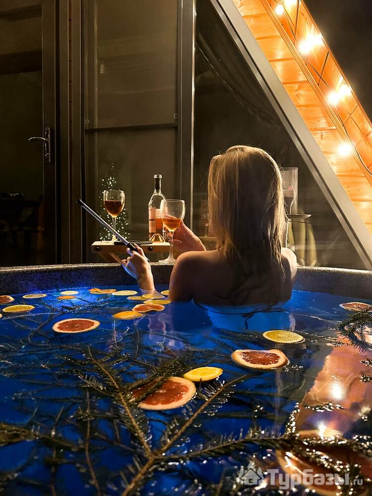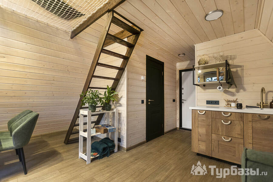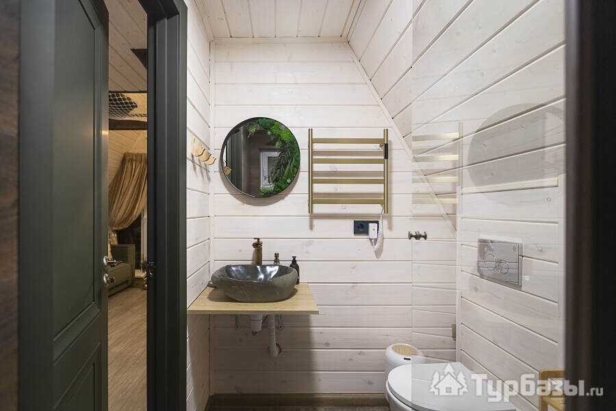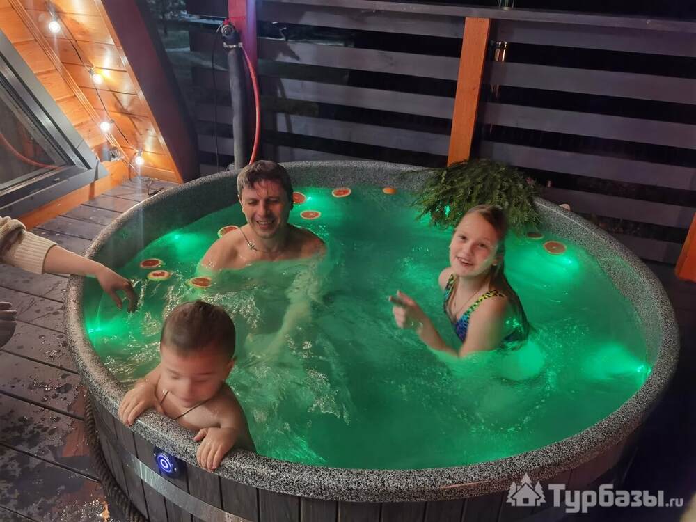 На территории — три разных по настроению домика: Винный, Тропики и Бохо; все домики подготовлены для круглогодичного проживания и оснащены кухнями (плита, мини-холодильник, микроволновка, чайник, набор посуды). У каждого домика есть собственная купель Фурако с подогревом на террасе (оплачивается отдельно). Парковка, мангальная зона у каждого домика и базовый набор бытовых мелочей входят в сервис.
