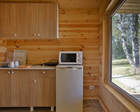 - Кухонный гарнитур с чайничком, плитой, холодильником, микроволновой печью, необходимой посудой