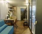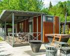 - Модульный домик (31 м2) — компактный и уютный, идеален для пары. Веранда с качелями, тишина и гармония.