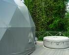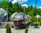 - Люкс-геокупол (56 м2) — простор и стиль для компаний до 4 человек, джакузи и банный чан под одной крышей, великолепный выбор в любое время года.