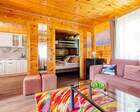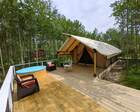 Здесь представлены разнообразные форматы жилья — от стильных палаток до комфортных домиков на 2–8 человек. Все дома оснащены кухней, мягкими King Size кроватями с белоснежным бельём и необходимой инфраструктурой: террасами с мебелью, мангальной зоной, а во многих домиках имеются еще и купели на дровах. Один из самых эффектных вариантов — «Дом у озера»: 50 м2, панорамный лесной вид, терраса и купель — идеально для романтического или семейного отдыха.