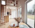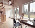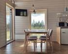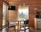 На территории — несколько полностью оборудованных коттеджей с панорамными окнами, мансардами и каминами; в домах есть полноценная кухня, санузел с душевой, ТВ и открытая терраса с зоной для барбекю. Всё оформлено в стиле аккуратной «скандинавской» простоты: внимание к деталям и экологичные материалы.