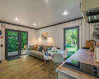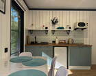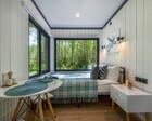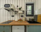 Во всех домиках: кухонная зона с плитой, микроволновкой, холодильником и посудой; тёплый пол, батареи, кондиционер; санузел с душем и феном. Удобная мебель, blackout-шторы для глубокого сна и Wi-Fi — вы вдали от шумного города, но не изолированы от комфорта.