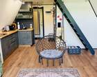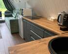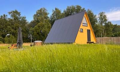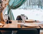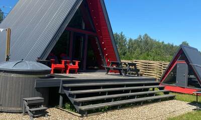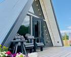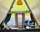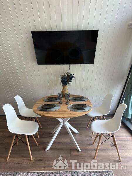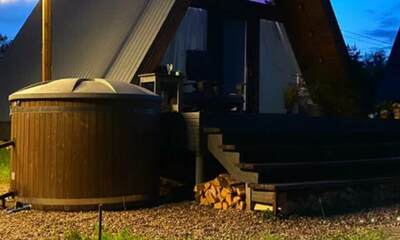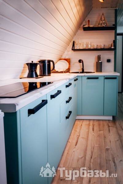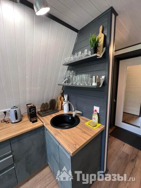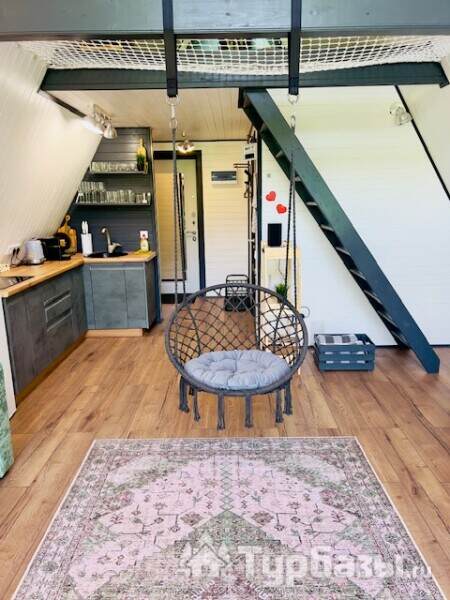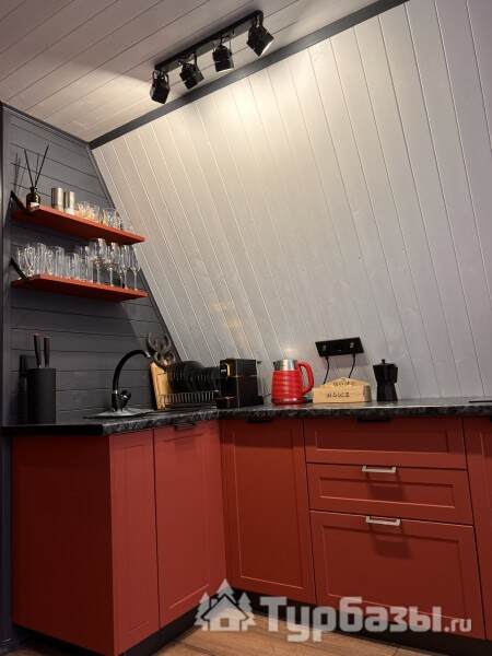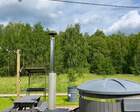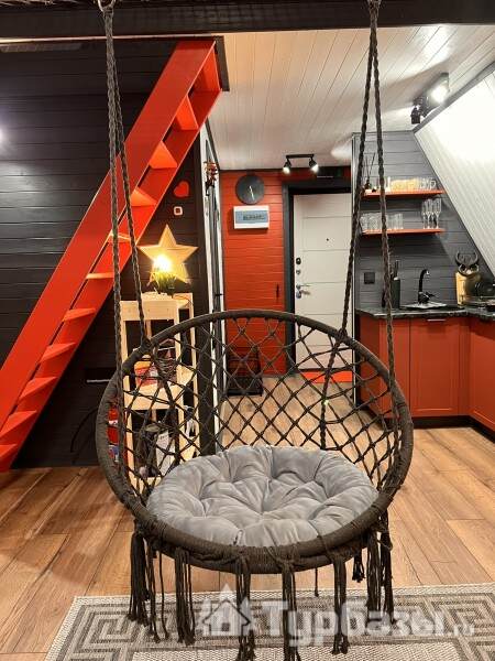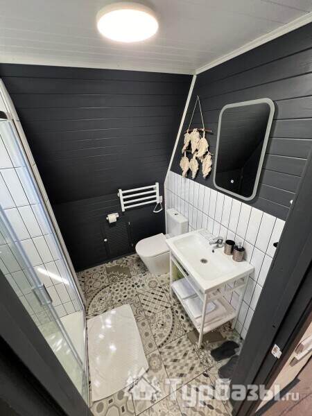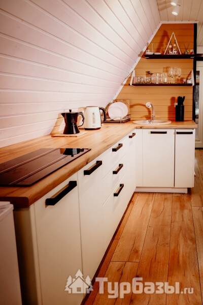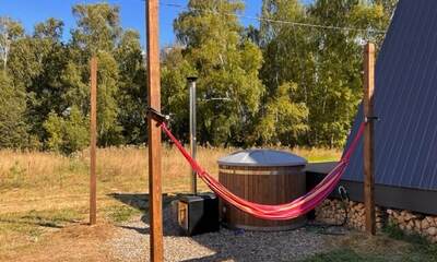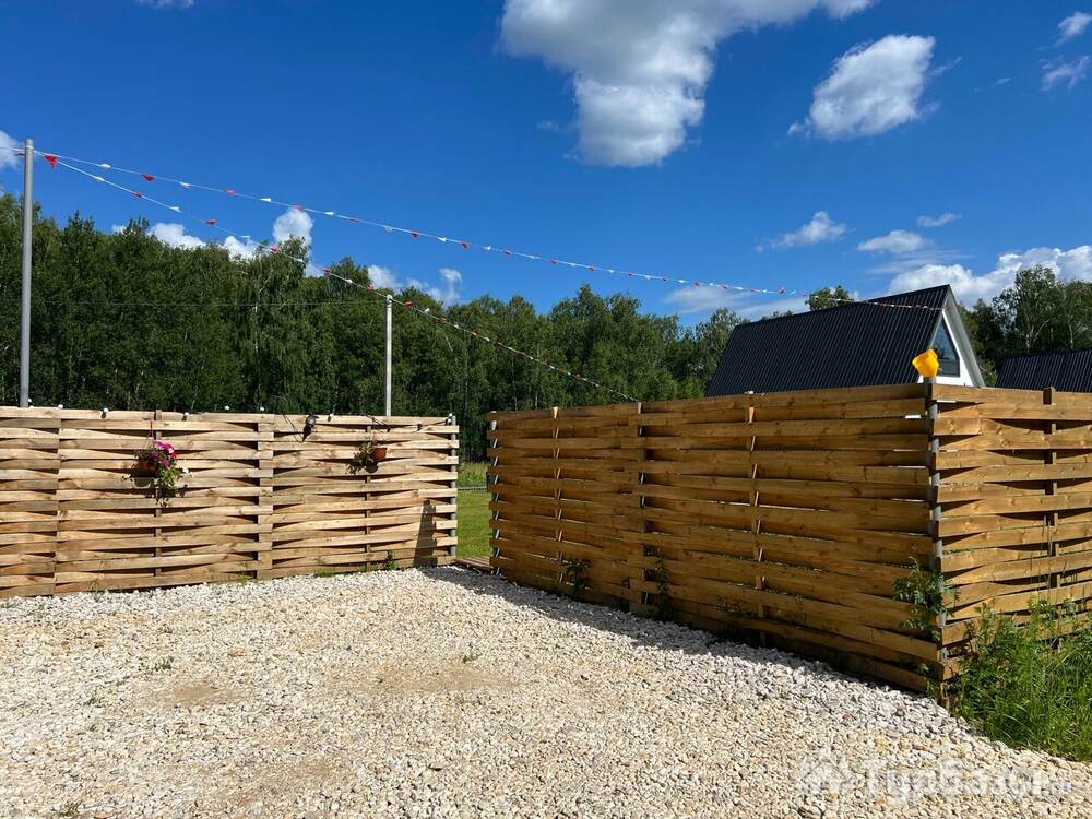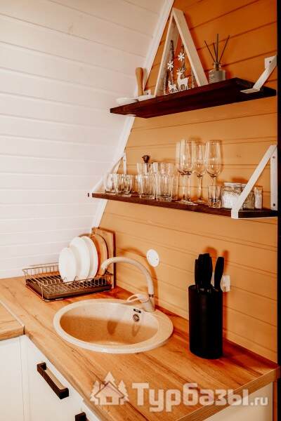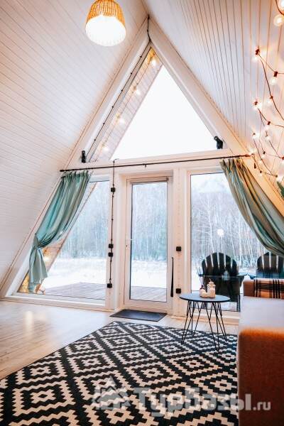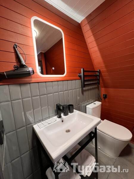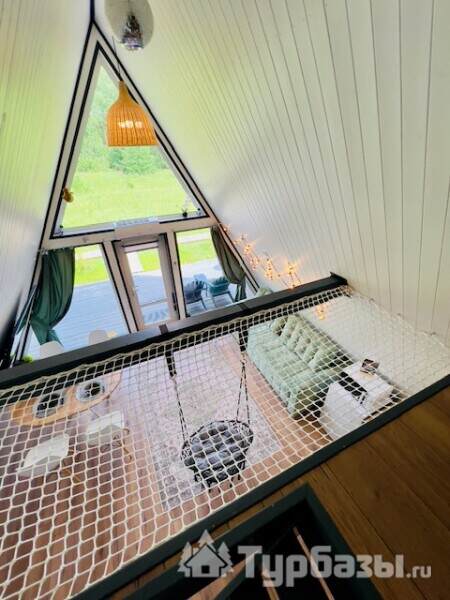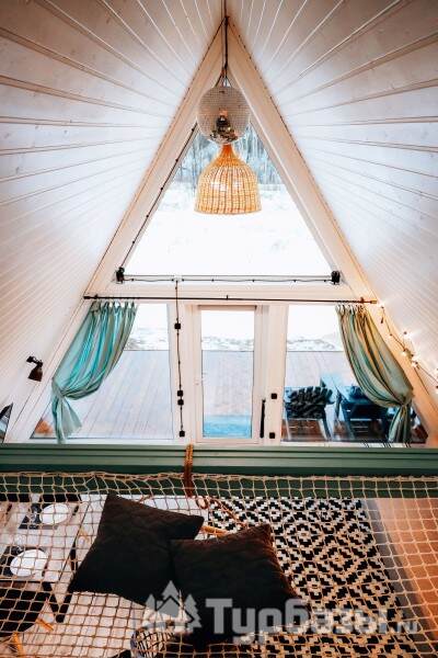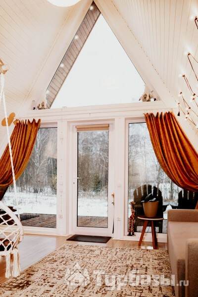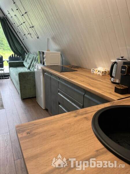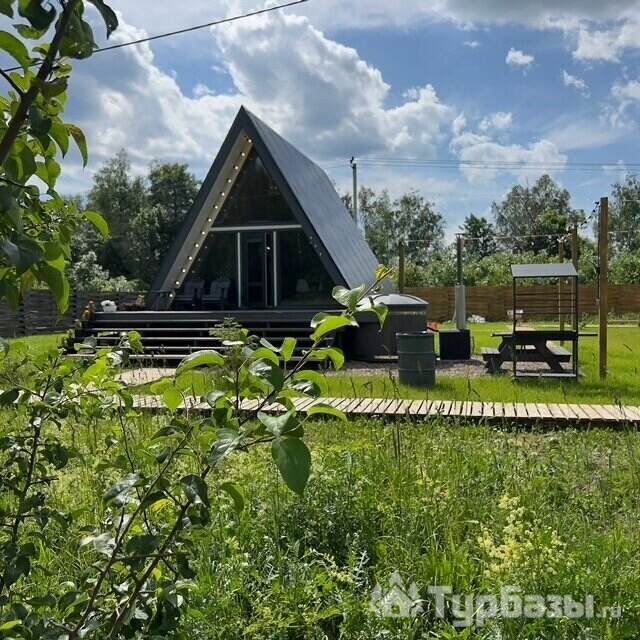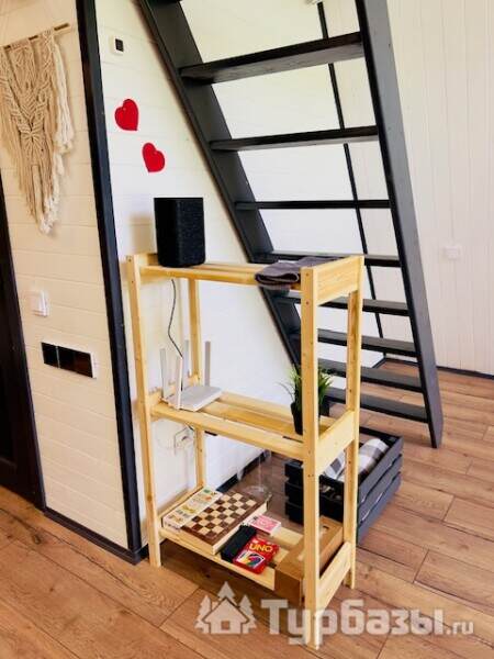 Каждый A-домик оборудован для комфортного проживания: меблированная терраса, отопление, кондиционер, чай/кофе, холодильник, микроволновка и посуда — всё для спокойного самообслуживания. На террасе многих домиков стоит подогреваемая купель, а на территории есть общая костровая зона, мангал и наборы для пикника. Для любителей парной — дровяная баня с веником и набором травяных чаёв.