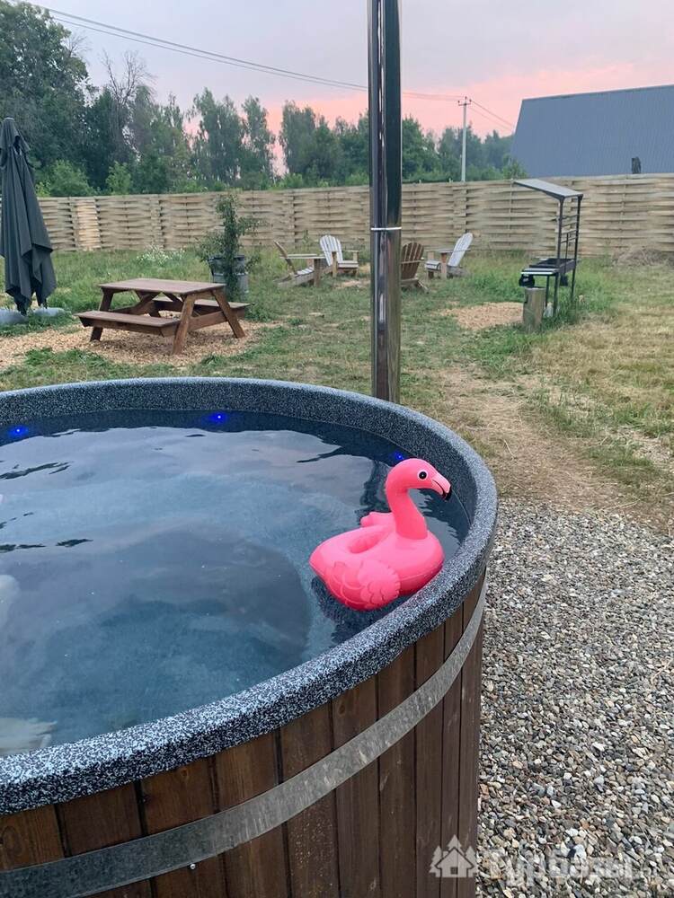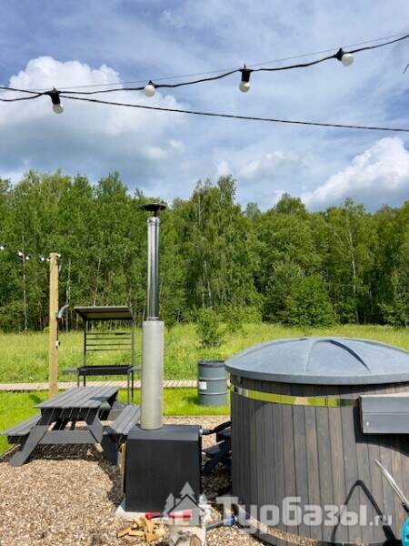 Дни здесь обычно проходят просто: ранний завтрак на террасе, прогулка к реке, купель вечером и парение в бане. Территория подходит для фотосессий, небольшой компании — есть столики и шезлонги, а для гостей без машины администратор помогает с доставкой до ближайшего магазина; также возможна доставка еды. Для тех, кто любит активный отдых, вокруг — лесные дорожки и река для прогулок.