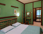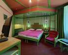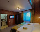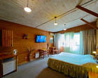 На территории устроено множество искусственных ручьев, прудов с фонтанами, большой водопад, необычный ландшафтный дизайн. Основное питание – полупансион (завтрак и обед по типу «шведский стол»). На ужин по меню - подарок: каждому гостю старше 14 лет дается ежедневный бонус в 1000 рублей на стоимость ужина. Работает 2-х этажный ресторан с 7 залами, бильярдом, баром, верандами и видеозалом с караоке.