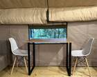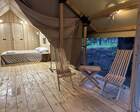 11 стильных сафари-вилл, с видом на лес или озеро. В каждой — своя терраса, мягкая кровать, отопление, душ и туалет, приятные мелочи вроде тапочек, халатов, фена и кофе-машины. Независимо от сезона — будь то зима или лето — внутри всегда тепло и уютно.
