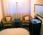 Площадь номера 20 кв.м. В спальне: кровать с прикроватными тумбочками, шкаф-гардероб, вешалки для одежды, часы, телевизор с dvd-плеером, постельное белье. В гостинной: журнальный стол, 2 кресла, рабочий стол, стул, фригобар, набор для приготовления чая и кофе, вешалка багажная с зеркалом, телевизор, телефон, чайник, чайные пары, винные бокалы, штопор, вешалки для верхней одежды, губка и рожок для обуви. В ванной комнате: подогрев пола, ванная, душевая кабина, унитаз с душем, зеркало, фен, набор полотенец, тапочки, халаты, гель для душа, шампунь, кондиционер.