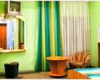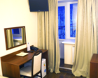 Площадь номера 20 кв.м. В комнате: кровать с прикроватными тумбочками, тумба для одежды, рабочий стол, телевизор, холодильник, кабельное телевидение, телефон, постельное белье, вешалки для одежды, губка и рожок для обуви. В ванной комнате: душевой уголок, шкафчик с зеркалом, диспенсер с жидким мылом, подогрев пола.