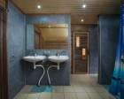 Для отделки жилых помещений рыболовно-охотничьего хозяйства использовано изъеденное жучками проморенное дерево. Это придает интерьеру необычный колорит и создает впечатление старины. Из окон номеров открываются великолепные виды на соседний водопад.