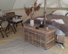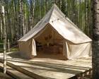 Конструкция шатров в глэмпинге соответствует стилю bell tent. Стены палаток выполнены из натуральной ткани, водонепроницаемой, но хорошо дышащей. Шатры великолепно сохраняют тепло.