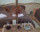 Вместительность каждой палатки от 2-х до 3-х человек. Весь лагерь освещается в темное время суток. Палатки также электрофицированы. Каждый шатер имеет персональный мангал с решеткой.