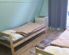 4 2-этажных теремка-«скворечника». В каждом домике по 4 3-4х-местных комнаты по 12 кв. м и по 1й комнате 22 кв. м на 4 места на втором этаже (всего 64-80 мест). 8 номеров с двуспальными кроватями 190х140.