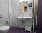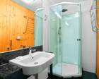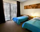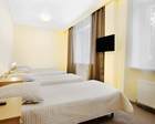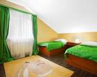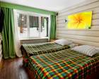 Номер представляет собой одну комнату, в которой находятся две 1/5 спальные кровати, тумбочки, шкаф, внутренний телефон, спутниковое телевидение. Санузел совместный с раковиной и душевой кабиной находится в номере.
