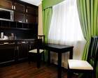 Апартаменты располагается в корпусе 3 и представляет собой три комнаты: спальня, гостиная, кухня. Спальня с двуспальной кроватью, двумя тумбочками и шкафом. Гостиная с диваном, шкафом, внутренним телефоном, спутниковым телевидением. Кухня с кухонным гарнитуром, столом, холодильником, электрочайником, кондиционером. Утюг, фен, сушилка для белья — предоставляются по требованию. Санузел раздельный с раковиной и душевой кабиной. Возможно комфортное размещение двоих человек.
