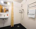 Номер представляет собой одну комнату, в которой находятся четыре 1/5 спальные кровати, тумбочки, шкаф, внутренний телефон, спутниковое телевидение. Санузел совместный с раковиной и душевой кабиной находится в номере.