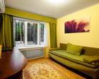 Спальня с двуспальной кроватью, двумя тумбочками и шкафом. Гостиная с диваном, шкафом, внутренним телефоном, спутниковым телевидением. Только без перегородки.