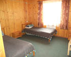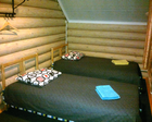 В гостинной две односпальные кровати ( при желании трансформируются в двуспальную) , в спальне- двуспальная кровать.