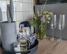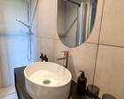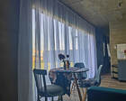 Спальня — двухспальная кровать, место для хранения вещей, панорамное окно, шторы-блэкаут. Ванная — душ тропический, туалет, раковина, зеркало, полотенцесушитель, средства гигиены, полотенца. Кухня — холодильник, электрическая плита, микроволновка, чайник, кофемашина-капсульная, приборы, посуда столовая, посуда для готовки.