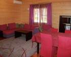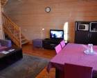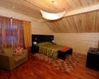 Оснащение: двуспальная кровать, диван, прикроватные тумбочки, журнальный столик, кресла, гардеробный шкаф, платяной шкаф, вешалки, письменный стол, телевизионная тумба, комод, камин, обеденная зона (стол, стулья), балкон, мебель на балконе, терраса, ЖК-телевизор, DVD-проигрыватель, спутниковое телевидение, микроволновая печь, холодильник, телефон, интернет (проводной), чайник, посуда, сауна с душем, туалетные принадлежности, фен.