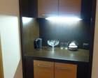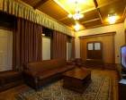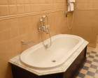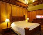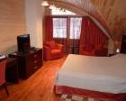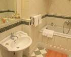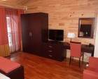 Оснащение: двуспальная кровать, прикроватные тумбочки, стулья, гардеробный шкаф, платяной шкаф, вешалки, письменный стол, паркетное покрытие, комод, тумба чемоданная, ЖК-телевизор, спутниковое телевидение, мини-холодильник, телефон, интернет (проводной), чайник, посуда, санузел с ванной и душевой кабиной, туалетные принадлежности, фен.