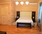 Оснащение: двуспальная кровать, прикроватные тумбочки, стулья, гардеробный шкаф, письменный стол, комод, тумба чемоданная, ЖК-телевизор, спутниковое телевидение, мини-холодильник, телефон, интернет (проводной), чайник, посуда, санузел с ванной, туалетные принадлежности, фен.