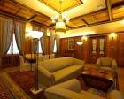 Оснащение: двуспальная кровать, диван, прикроватные тумбочки, туалетный столик, стул, журнальный столик, кресла, гардеробный шкаф, платяной шкаф, обеденный стол, комод, камин, вешалки, телевизионная тумба, ковровое покрытие, балкон, ЖК-телевизор, спутниковое телевидение, DVD-проигрыватель, холодильник, микроволновая печь, телефон, интернет (проводной), чайник, посуда, санузел с душем, туалетные принадлежности, фен.