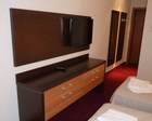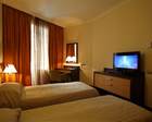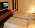 Оснащение: две односпальные кровати, прикроватные тумбочки, стулья, гардеробный шкаф, вешалки, письменный стол, паркетное покрытие, комод, ЖК-телевизор, спутниковое телевидение, мини-холодильник, телефон, интернет (проводной), чайник, посуда, санузел с душевой кабиной, туалетные принадлежности, фен.