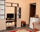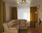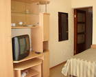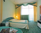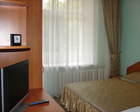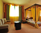 В номере две комнаты. В спальне: одна двухспальная кровать (или две односпальные кровати, стоящие рядом), две прикроватные тумбочки, туалетный столик с зеркалом. В гостиной: раскладывающийся диван, мебельная стенка, холодильник, телевизор, чайник, фен, телефон. Ванна и санузел в каждом номере.