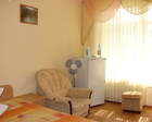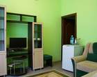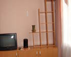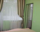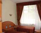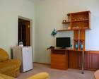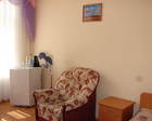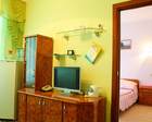 В номере две комнаты. В спальне: две односпальные кровати, две прикроватные тумбочки. В гостиной: раскладывающийся диван, мебельная стенка, холодильник, телевизор, телефон. Ванна и санузел в каждом номере.
