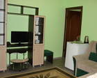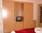 В спальне: одна двухспальная кровать, две прикроватные тумбочки. В гостиной: раскладывающийся диван, мебельная стенка, кондиционер, холодильник, телевизор, чайник, фен, телефон. Душ и санузел в каждом номере. Балкон.
