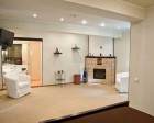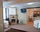 В номере: каминный зал: угловой раскладной диван, камин, плазменный телевизор, журнальный стол. Кухня: обеденная зона, кухонная зона, барная стойка