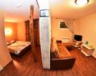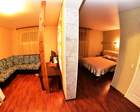 В номере: двуспальная кровать на подиуме, санузел с душем, диван, шкаф-купе, ТВ, столик, чайник, набор посуды для напитков, полотенца, гель для душа, шампунь, мыло. Дополнительное место на диване.
