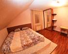 В коттедже: банкетный зал вместимостью до 25 человек, большой стол на 16 человек, оборудованная кухня (набор посуды, СВЧ, холодильник, э/чайник, э/плита, вытяжка), спутниковое ТВ 46 диагональ, 5 номеров (в номере двухспальная кровать, тумбочки, прихожая, в двух номерах + односпальные кровати), мангал. Музыка - музыкальный канал на ТВ. В одном из номеров детская кроватка.