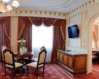 Трехкомнатный номер повышенной комфортности. Площадь номера 70 м², наличие одной спальной комнаты, гостиной со столовой зоной, кабинета, одной ванной комнаты с джакузи и санузлом, отдельным санузлом для гостей. В номере: электронный замок, система кондиционирования, 2 ЖК телевизора, интерактивное ТВ, мини-бар, чайник, чайные пары, сейф, телефон, полотенцесушитель, утюг, гладильная доска, холодильник, ванная.