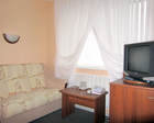 Номер 25 кв.м., состоит из двух комнат: гостиная (шкаф, диван, стол) и спальня с одноместной кроватью. В номере: телевизор, холодильник, телефон, Wi-Fi, ванная комната (полотенца, туалетные принадлежности индивидуального пользования).