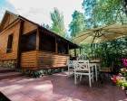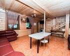 Может вместить до двадцати пяти человек. Есть терраса со столом и лавочками, мангал. Отапливается дровами, можно похлестаться веникчком а затем окунуться в бассейн. Их два – купель и емкость с теплой водой. Оборудованы раздевалка и две комнаты отдыха. Душевая установка, туалет.