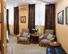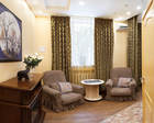 Номер оформлен в элегантном классическом стиле и разделен на спальную и гостевую зону. Украшением гостевой зоны является камин. Он не только подарит приятные эмоции, тепло и уют вашему отдыху, но и станет прекрасным дополнением к романтическому вечеру или местом для проведения уникальной фотосессии.