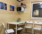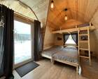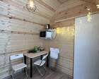В домиках есть все, что нужно для комфортного пребывания: две двухъярусные кровати, теплые полы, собственный санузел с душем, обеденный уголок с чайником и микроволновкой, посуда, полотенца, одноразовые тапочки и индивидуальные шампуни и гели для душа.
