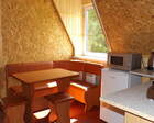 В доме открытая веранда, 2 спальни (1- с двуспальной кроватью, и 2 - три отдельные кровати), кухня, прихожая, туалет, на 2-м этаже - мансарда, где в летнее время можно разместить дополнительные спальные места.