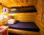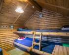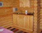 Состоит из уютной комнаты и террасы, с которой открывается вид на озеро. Аренда коттеджа для отдыхавозможна для компании из 4 + 2 человек. В домике две двухъярусные кровати, кухонный уголок с холодильником и всеми необходимыми принадлежностями. Чтобы сделать ваш отдых максимально комфортным, большинство домиков оснащены телевизорами, печками-каминами или обогревателями. В отдельном санитарно-техническом блоке расположены туалеты, душевые кабины, раковины.